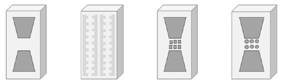 These were PCAs based on plasmonic light concentrators, as shown Figure 3a, in this case, the surfaces where the light beam strikes are con-fined in a small space between the two electrodes. The surface surrounding the electrodes is the metal semi conductor [4]. Another approach for building photoconductive antennas is based on plasmonic contact electrodes, as shown in Figures 3b, 3c, and 3d. The main goal of this approach consists of increasing optical absorption near the contact electrodes.