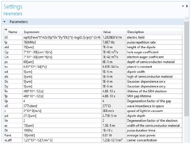 Thanks to the development of specialized software to simulate physical phenomena, COMSOL is used in its finite element method (FEM) mode to facilitate troubleshooting and obtain more accurate currents in order to have numerical stability and values closer to reality.With this method, it is easy to couple different physics. Next, Fig. 4 shows each of the parameters included in the COMSOL tool.