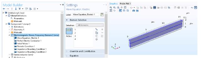 Once this has been defined, the work domains, the conditions of impedance and periodicity are assigned, as shown in Figure 7.