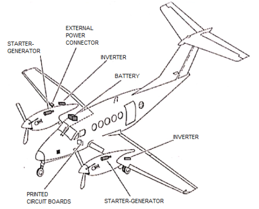 The Super King Air 200 Series aircraft are a family of twin turboprop aircraft designed and produced by Beechcraft. Its direct current electrical system is made up of two generators connected in parallel, a battery, a panel of DC components, and a connector for an external plant, as seen in Fig. 1. It should be noted that, as part of the continuous fleet modernization by the National Army the inverters that are part of the manufacturer’s original aircraft were removed. The aircraft’s Figure 1. Electrical system of the Beechcraft King Air [1#093; primary electrical system is a 30 VDC generator system, regulated to 28,25 _ 2,5 volts, and it has a capacity of 250 amps to supply current to the main distribution bars (hot battery bus, main battery bus, left generator bus, right generator bus, isolation bus, No. 1 dual fed bus, No. 2 dual fed bus, No. 3 dual fed bus, No. 4 dual fed bus). The airship’s electrical diagram can also be seen in Fig. 2.