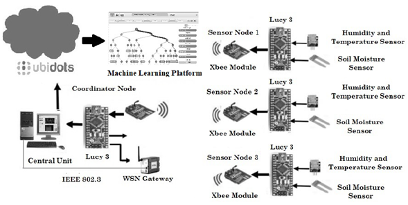 Method: For the present work, an architecture of 3 wireless sensor nodes was developed. Each node consists of a Lucy3 programmable card, to which the temperature, environmental humidity, and soil moisture sensors were connected. The measurement terrain is located in El Cortijo coffee farm. Measurements were made over a period of two weeks, three hours a day, sending the information from the nodes described above to a gateway that then transmitted the information to a base station. Finally, the data was loaded on an online platform for transformation and predictive analytics through a supervised learning model.