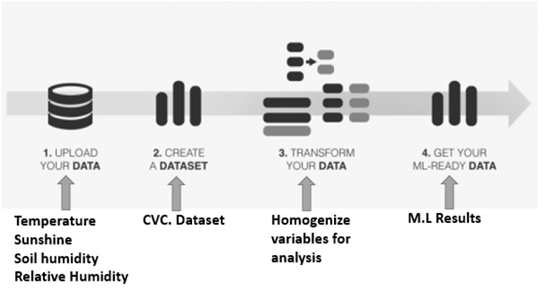Also, as it is solely focused on machine learning, BigML offers a comprehensive set of features, all well integrated within an interface where the user can load datasets, train and evaluate models, and generate new predictions, one by one or in batches. It contains a wide gallery of datasets and free models to probe, organized in categories, in addition to being accessible to the public. It also contains algorithms for Educational Clues, as well as grouping and selection to create high-quality models [11]. In Fig. 4 the data transformation process can be observed.