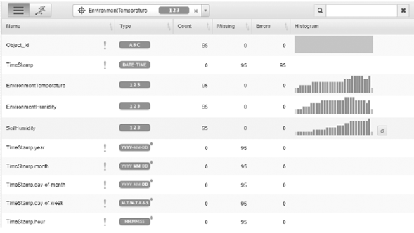 It was determined that the Lucy 3 programmable cards in each of the sensor nodes were programmed to receive the values sent by each of the sensors every 10 minutes, in order to send said data to the Gateway and from there to the station base. From there, the information was sent to the Ubidots platform, where the measured values were analyzed, and it was determined whether they were within the established ranges. Comparisons between the received values and the allowed ranges could be established to determine anomalous variations in said measurements. Distance tests were developed to determine the maximum range of the Xbee -Pro S2C wireless modules, to ensure reliable data transmission without loss and signal attenuation. It was thus found that the maximum range is within the established 100 m limit in open field. Fig. 6 shows the data from transmitted variables being measured through the Lucy 3 platform. This information is useful because it can determine if any data was lost or arrived without any error during the broadcast. We can see the DataSet loaded to the BigML platform to apply the supervised model.