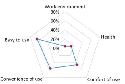 Difficulty in moving autonomously and independently is one of the most common obstacles for people who suffer from visual impairment, a situation that, in addition to affecting their mobility, can cause them to face problems at an emotional level, as well as work and social interaction. However, this population has adopted different technologies to support their daily activities; 65% of visually impaired people use accessible technologies for their ease of use when performing specific tasks [2]Figure 1 shows the percentage of people who benefit from the use of inclusive technologies, and the reasons for their use are included in the quantitative data.