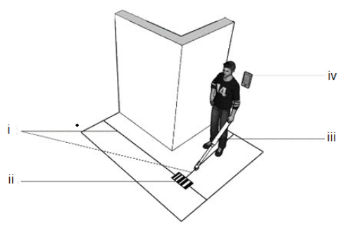 Next, the proposed solution is described. Figure 2 illustrates the main components that make up the system of guides in closed spaces for people with visual disabilities, which consists of a series of guides (i) that create a network of routes to the different destinations within the enclosure. At the beginning, at the end and at the intersection points of the network, there are information points (ii) (barcodes) that can be detected through an optical sensor at the tip of the electronic baton (iii), which is connected wirelessly to a mobile device (iv) with a software application that provides audible information to the user.