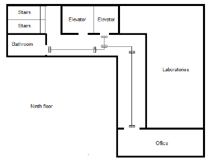 In the second test, three destinations were defined: the AXON research group office, the bathroom, and the elevator, located on the 9th floor of building J of the National Unified Corporation for Higher Education (CUN). The blindfolded participants made 10 timed tours between these destinations with the help of the electronic baton and an assistant. The route diagram is shown in Figure 5, and the timed average time results of the tours are presented in Table II.