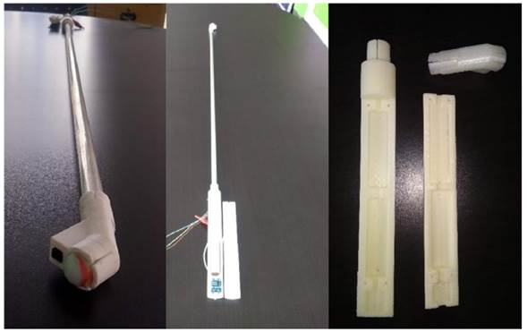 As a result of the entire design, testing, and feedback processes, the electronic baton device was developed, whose electronics are presented in Figure 7, namely the modules and elements described above in the design and modeling section. Finally, the result of this process can be seen in Figure 8, which presents images of the developed prototype.