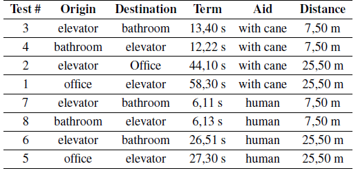 In Table II, it can be seen that the user is able to autonomously follow the routes to different destinations using the electronic baton, although the time used for the route with the cane is longer compared to receiving human assistance. This may be due to the fact that moving around when the environment is unknown generates a feeling of insecurity, whereas, if there is human assistance, the blind person moves at the speed of the human guide. Speaking of the experience with the participants, it could be stated that, as the user becomes familiar with the use of the tool, they feel more comfortable and confident in being able to autonomously reach their destination.