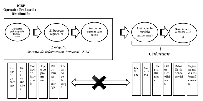 Si bien se cuenta con dichas plataformas de información, sus capacidades no tienen la misma cobertura que la entrega de la asistencia alimentaria. Actualmente el proceso de registro de beneficiarios en el sistema Cuéntame tiene alcance hasta las unidades de servicio, no siendo accesible por parte de los beneficiarios. Esto quiere decir que si bien es coherente con el actual procedimiento de acceso, no permite aún procesos de solicitud de cupos o autosuscripción, lo cual para las zonas urbanas podría ser de gran utilidad. Adicionalmente el sistema no tiene aún la capacidad de interconexión con otros programas de asistencia social, bases de datos o plataformas de informaciónde instituciones privadas o estatales, de tal manera que dicha interconexión le permitiese identificarnuevos beneficiarios potenciales y de esta manera pasar de un proceso de ingreso pasivo a uno activo. En cuanto al seguimiento del progreso del programa, actualmente Cuéntame permitehacer seguimiento del estado nutricional de los beneficiarios, sin embargo no tiene relación con la trazabilidad de la entrega efectiva del producto a los beneficiarios, lo que limita, en primer lugar, asegurar el uso apropiado de los recursos destinados al programa y, en segundo lugar, relacionar los consumos con la evolución de la población infantil vulnerable. Ampliando el proceso de trazabilidadde la carga, el sistema SIM, al igual que Cuéntame, tiene un alcance diferente al del sistema. Esto quiere decir que el sistema solo permite hacer seguimiento de la carga enviada desde las plantas de producción hasta los puntos de entrega; es decir, el sistema no tiene visibilidad entre los casi 5.000 puntos de entrega con los beneficiarios, que tal como se declaró anteriormente pueden variar entre 2 y 6 millones.