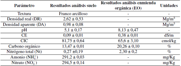 respectivamente. Los resultados encontrados sugieren que con la enmienda orgánica se puede disminuir la fertilización con urea hasta en un 50% por el aporte de amonio [11].