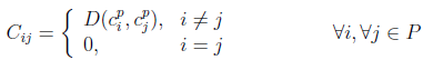 Cij : matriz de costo entre cada par de paradas (i, j)