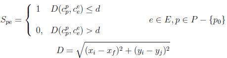 Spe matriz binaria. 1 si el estudiante e puede alcanzar la parada p y 0 en caso contrario
