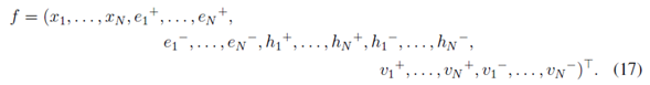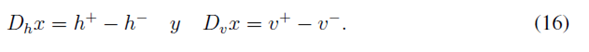 . También, se separan los términos de las derivadas parciales en los vectores h+ ≥ 0, h- ≥ 0, v+ ≥ 0 y v- ≥ 0, de forma que