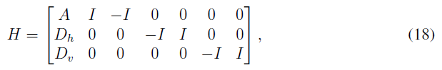 Es decir, se pueden separar las derivadas en la dirección horizontal y vertical de la imagen. De hecho, pueden ser calculadas de forma similar a como se calculó la matriz A. Las derivadas parciales son transformaciones lineales. Gracias a esto, se pueden calcular las matrices Dh y Dv , de forma que y que
