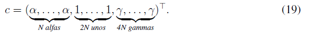 Con todas estas observaciones se puede reescribir el problema de optimización de la ecuación (12) en términos de los problemas de optimización asociados a las constantes α y γ. Para ello, se hacen las siguientes definiciones: