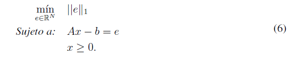 A pesar de la apariencia simple del sistema de ecuaciones (5), este es un problema mal condicionado, es decir, su solución x es muy sensible a pequeños cambios en el vector b (ver [6] y [21]). Esta característica, proviene del hecho de que el problema (5) es la discretización de la ecuación integral (1). Por lo tanto, una “buena” solución es aquella que minimiza el error residual e := Ax - b. Teniendo esto en cuenta, se propone el siguiente problema de minimización: