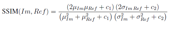 - Índice de similitud estructural o SSIM por sus siglas en inglés (Structural Similarity Index): este índice evalúa la similitud entre dos imágenes, varía de cero a uno, donde uno significa que las imágenes son la misma y cero que las imágenes no tienen estructuras comunes (ver [34])