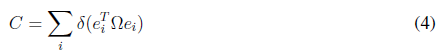 Where ei is the i-th re-projection error of the i-th key point in the local map, is the i-th key point in the image, π is the re-projection function, which depends on the current camera position Tc and the 3D world map point