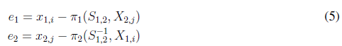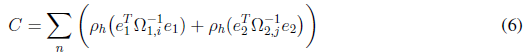 Where e1 and e2 define the re-projection errors between key frame 1 and 2; and
