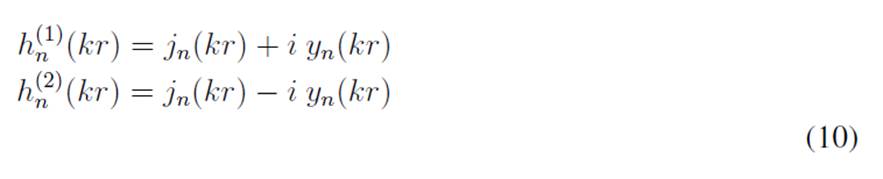 expressed according to Eq. (6). The spherical Hankel function of the first and second kind, h (1) n and hn, respectively, can be expressed as