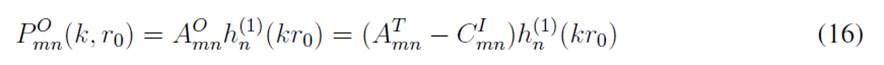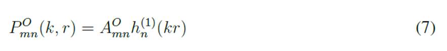 As the radiated sound field from the acoustic source only contains outgoing spherical waves, the spherical wave spectrum of the radiated field P O mn(k, r) can be defined as