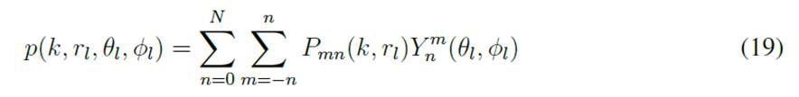 where p(k, r1, 0, 0) represents the acoustic pressure of the sampled field in the axial direction, and p(k, r1, θl , φl) is the acoustic pressure at every other position l.