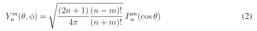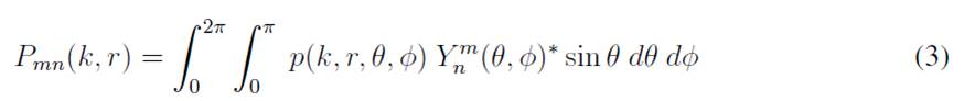 where (·) ∗ denotes the complex conjugate operator. Eq. (3) can be regarded as the forward Fourier transform with basis function Y m n (θ, φ), and the corresponding inverse Fourier transform is