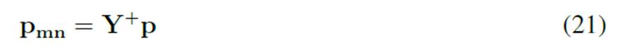 representing a finite set of linear equations, of which Pmn(k, rl) are unknowns that should be determined. A least-squares solution for this set of linear equations can be applied to solve for the spherical wave spectrums Pmn(k, rl). However, in order to guarantee the existence of a least squares solution, the system must be overdetermined, thus implying that the number of sampling points M must be equal to or greater than the number of unknows. Recalling that, for each spherical wave spectrum Pmn(k, r), a pair of Amn and Cmn coefficients could be needed. The total amount of unknows to be determined equals 2(N + 1)2 , so that the least-squares solution can be estimated if M ≥ 2(N + 1)2 . Eq. (19) can be written in matrix form: