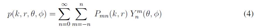 The acoustic pressure p(k, r, θ, φ) of a sound field propagating in a medium can be represented in spherical coordinates as