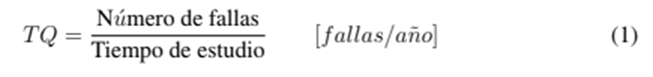 Tasa de quema: variable basada en la confiabilidad del sistema y calculada a partir de los eventos de falla registrados en los años de estudio. Se define como el número de fallas de un componente por unidad de tiempo de registro.