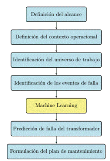 Representar adecuadamente un sistema real mediante un modelo determinístico depende directamente de la relación explícita entre las variables de dicho sistema (9. Para este caso en específico, la naturaleza estocástica del sistema de distribución y sus elementos no permite relacionar de forma directa y numérica las variables que intervienen en el proceso; por tal motivo, la metodología que se presenta a continuación tiene en cuenta las condiciones de operación de los elementos, las caracteristicas climáticas de la región, el historial de fallas de años anteriores y el riesgo asociado a las mismas para el operador de red. El análisis y la optimización de toda la información se realizan mediante aprendizaje automático, a partir de estudios netamente estadísticos y probabilísticos para identificar el plan de mantenimiento más adecuado.
