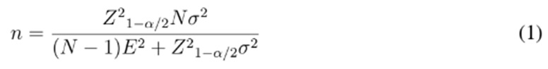 Los parámetros estadísticos de los datos de caracterización de residuos se hallaron según la fórmula para el cálculo del tamaño de la muestra (Ecuación 1) sugerido por el Centro Panamericano de la Ingeniería Sanitaria y Ciencias del Ambiente 23: