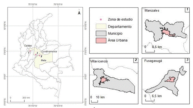 El proyecto se desarrolló en tres áreas urbanas del país, como se observa en la figura 1: