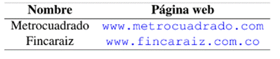 En los últimos años, se ha fortalecido la comercialización de inmuebles mediante el uso de portales web, convirtiéndose este en el principal medio para la publicación de la oferta inmobiliaria, con el consecuente relegamiento de la publicación mediante medios impresos. Lo anterior, incide favorablemente en la cantidad de información que se encuentra disponible en la red para alimentar un proceso de Web Scraping. Existe una gran cantidad de portales dedicados a la publicación del negocio inmobiliario entre los que se destacan los descritos en la tabla I.