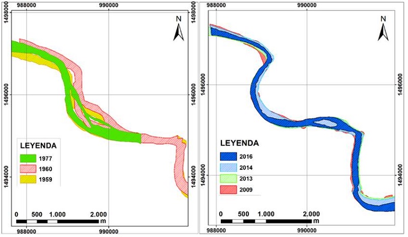 La dinámica fluvial a lo largo de estos 49 años de estudio demuestra un cambio en factores geométricos y volumen de agua, debido a la tendencia del río a perder agua a través de los años.