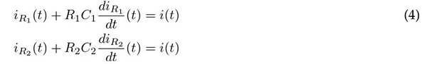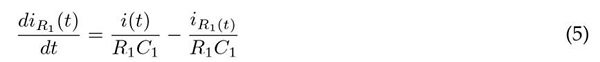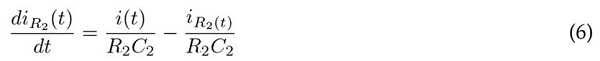 Finalmente, utilizando la Ec. (5) se pueden despejar las derivadas de corriente en las resistencias, presentadas en (5) y (6).