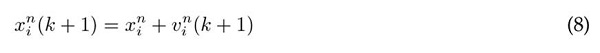 Donde para cada nth dimensión de la partícula i, xn i