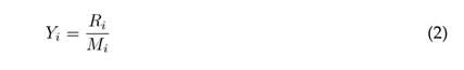 ‘’donde Yi es la relación de un volumen dado, se define n como las repeticiones realizadas, Mi viene siendo la concentración de gas medido por el sensor en un determinado volumen, Ri es la concentración de gas objetivo en el gas estándar para un volumen definido, dado que i es el gas utilizado” (14, p. 10).