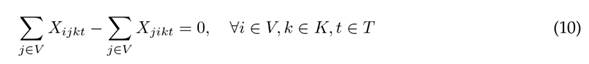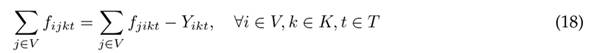Otra alternativa para la eliminación de sub-tours es la propuesta de 17, la cual utiliza el modelo de flujos, donde se debe considerar una variable de decisión fijt que representa la cantidad de flujo que pasa por el arco ij en la ruta del período t, es decir, que representa al número de clientes que serán visitados después del cliente j.