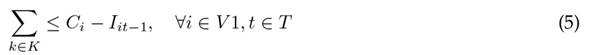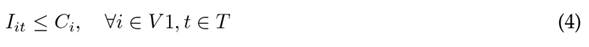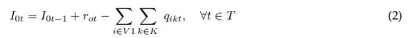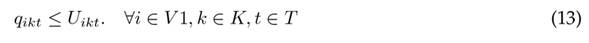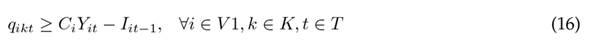 La Ec. (16) asegura el manejo de la política OU, donde, cada vez que un cliente es visitado, recibe una cantidad de inventario que llena completamente su capacidad de almacenamiento.