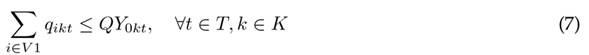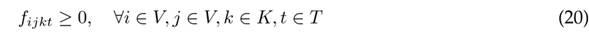 Las nuevas restricciones están asociadas al flujo de cada ruta, asegurando un solo circuito conectado. El primer conjunto de restricciones (17) asegura que el flujo inicial de cada ruta es igual al número total de clientes a visitar (excluyendo el nodo del proveedor). El segundo conjunto de restricciones (18) garantiza una disminución de una unidad de flujo cada vez que se pasa por el cliente a visitar en la ruta (excluyendo el arco de retorno para el proveedor). El conjunto de restricciones (19) garantiza el flujo de un arco si pertenece a la ruta de solución. Finalmente, el conjunto de restricciones (20) define el dominio de las variables.