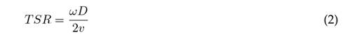 The speed ratio at the tip of the blade (T SR) gives a proportion of the angular velocity of the rotor in dimensionless terms, according to Eq. 2