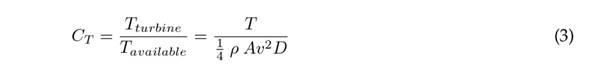 The torque coefficient (CT ) is estimated as the ratio between the torque generated by the rotor on its shaft (T) and the torque that is possible to generate under the given conditions 47,48. This is expressed by Eq. 3, where ρ is the density of the air and A = DH is the frontal area of the rotor.