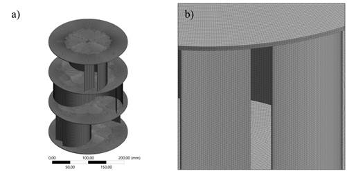 In the same way, for the solid body that simulated the rotor, five meshings were built, which were defined by predominant hexahedral elements forming structured faces on the walls of the blades (Fig. 7).