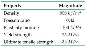 Polyethylene was defined as the construction material, as it is a commonly used medium-strength polymer. Table IV shows its main structural properties.