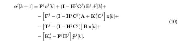 Note that Ej is used instead of E and dj [k] instead of d[k], indicating that each UIO considers its own perturbations. That is because, for each UIO, a way to approximate the control action modification is to assign more weight to the state variables related with the outputs used directly by the jth UIO.
