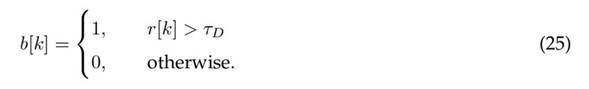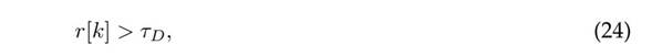 where τD is a threshold associated with the maximum estimation error that the system could supposedly tolerate. In order to find τD a number of simulations have to be carried out in different conditions, with the aim to minimize false alarms. Then, a binary variable b[k] is used to denote whether or not an attack is active at time k in any sensor of the system, as