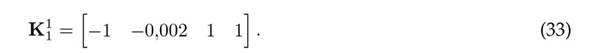 After obtaining E1 , 12- 15 must be satisfied. From 12, H1 can be calculated. With H1 , T1 can be obtained from 14. In order to find F 1 using 13, observability must first be verified, or, at least, the detectability of the pair (A11 , C1 ). The rank of the observability matrix of the pair (A11 , C1) is 1 instead of n = 4, which means that the system is not completely observable. Moreover, there is only one observable mode. Then, the pair (A11 , C1) must be transformed into its observability canonical form, in order to (i) verify whether the nonobservable modes of the system are stable and, if that is true, (ii) to define the closed-loop desired mode for UIO 1. Effectively, in this case, the three nonobservable modes are stable and, therefore, a good location for the only observable mode could be z = 10−3 , in order to guarantee that the convergence of the estimation error is faster than the closed-loop system dynamics. Given the above, the following is found