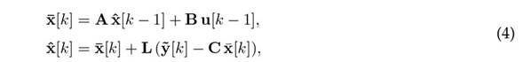 where is the predicted estimate, which is based on a model prediction from the previous time estimate, corrected by the measurement of the output, becoming