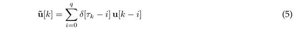 The Kronecker delta function δ[τk− i] is used to represent the random communication delays and the missing stochastic data. The time delay τk is a random variable considered to be an integer multiple of the sampling time Ts, introduced to describe the possibility of data missing, as well as the size of the delay at time instant k23.